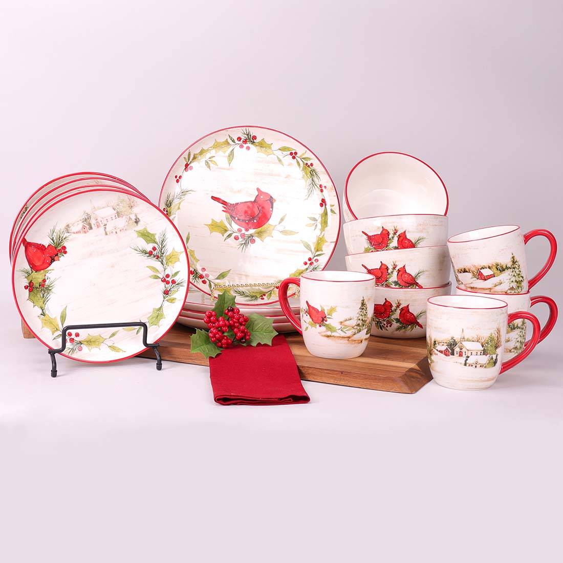 Stoneware Cardinal 16 Piece Seasonal Dinnerware Set Cracker Barrel