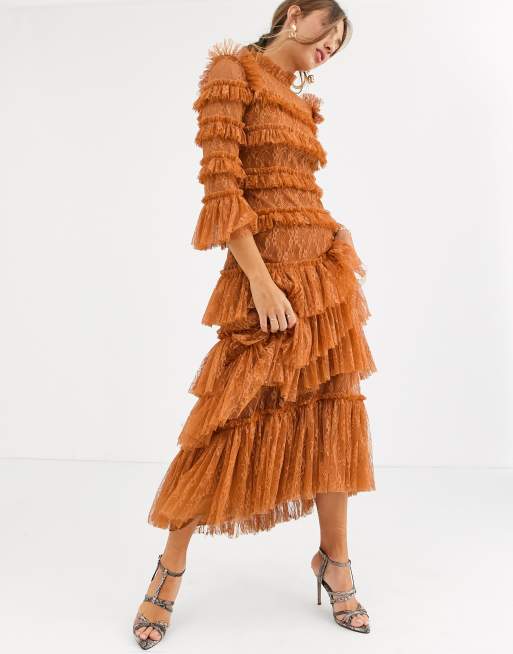 Carmine dress by malina clearance, By Malina Carmine layered lace maxi dress in rust clearance