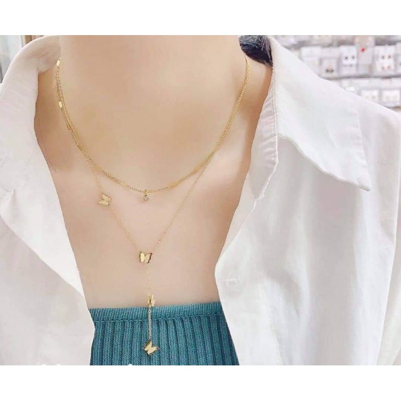 Stainless steel gold Cartier necklace 2Layer butterfly dSign non