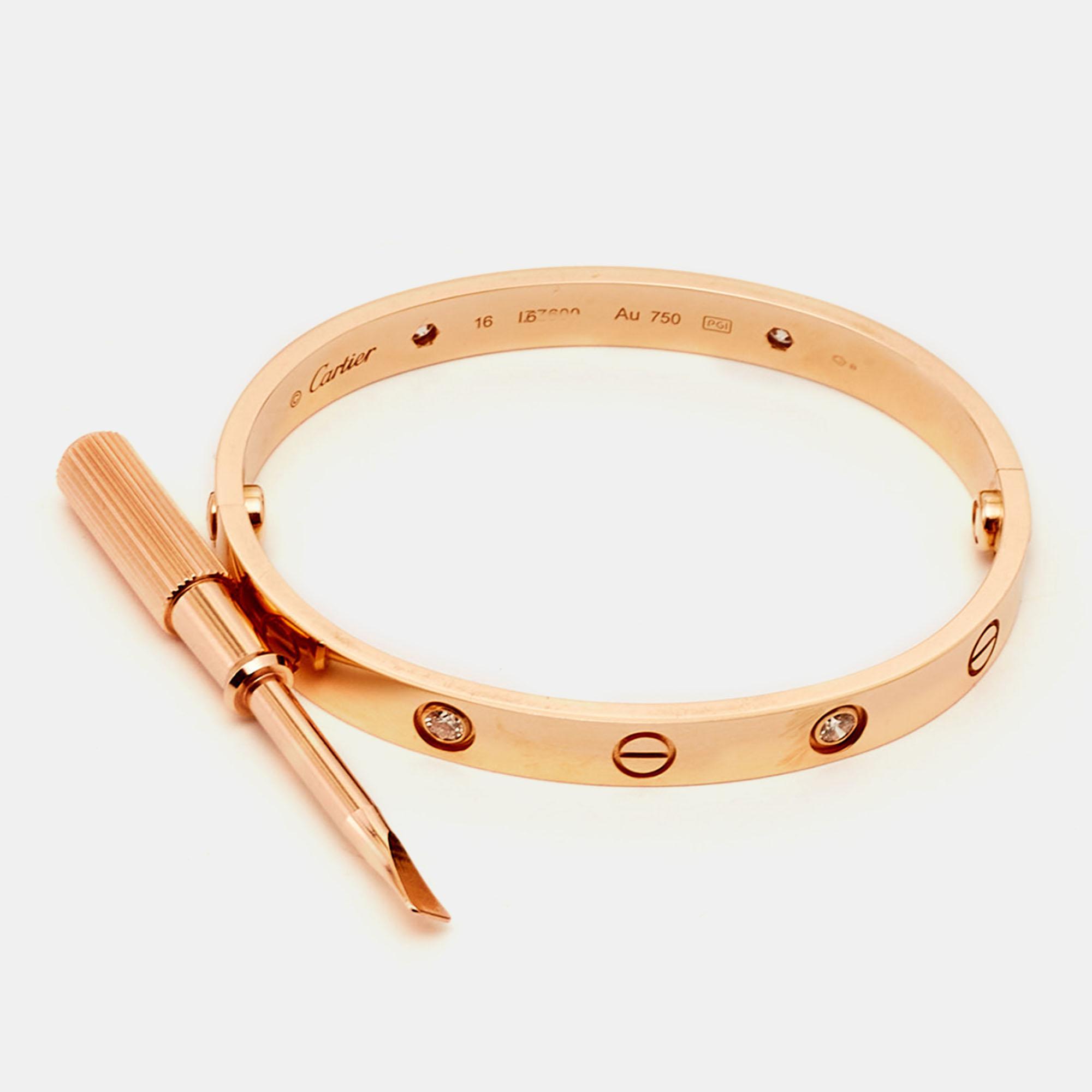 Cartier Love 4 Diamond 18K Rose Gold Bracelet 16 Chairish