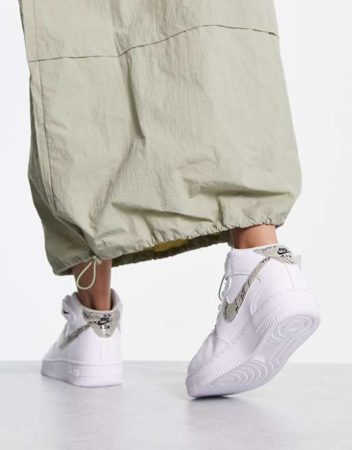 Nike Air Force 1 Mid trainers in white with snakeprint swoosh ASOS