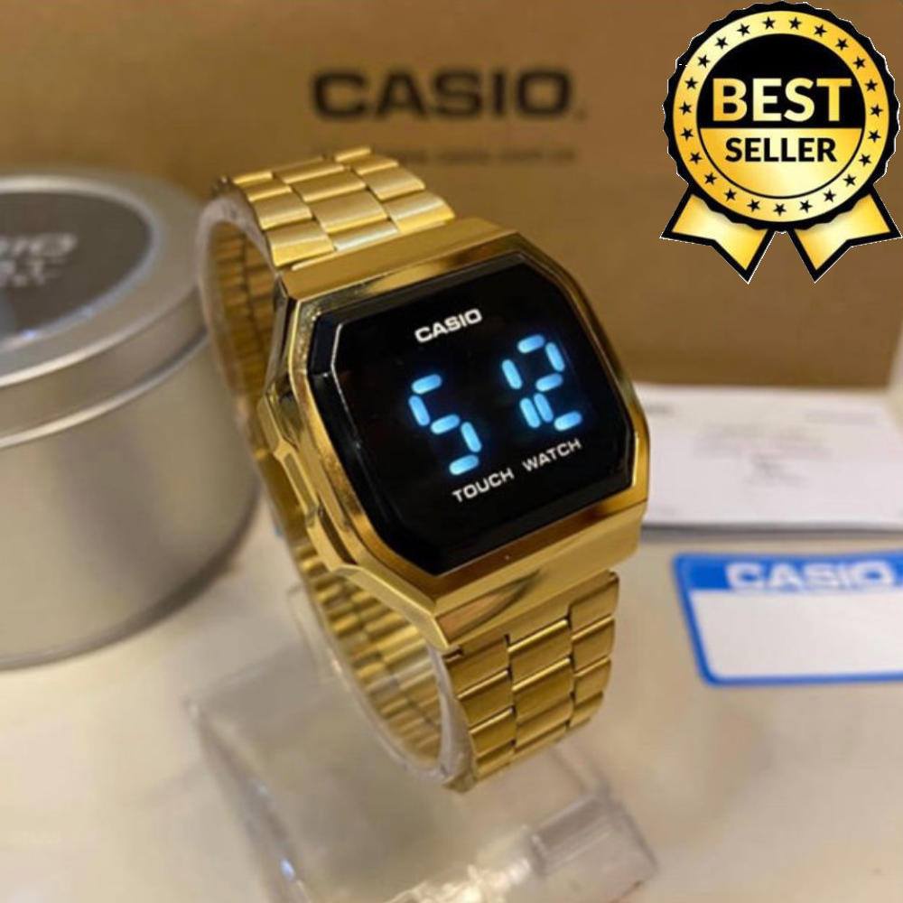 Spot segundo Casio A168 Touch Watch Black Dial Gold Plated Classic Vintage Stainless Steel Watch Wi