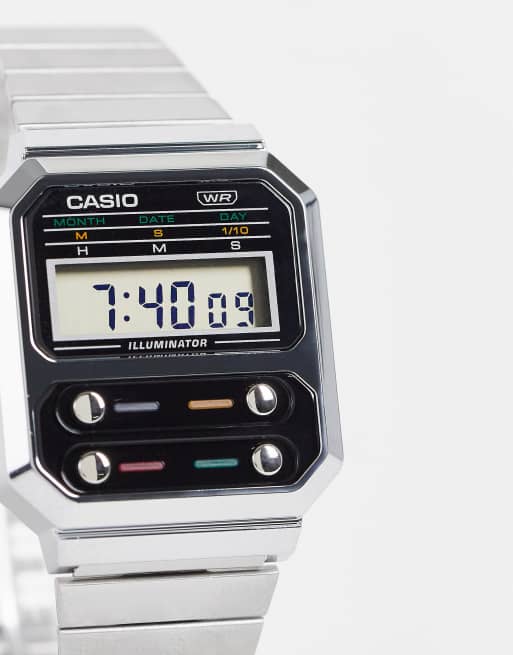Casio Revival F 100 unisex digital bracelet watch in silver A100WE 1AEF