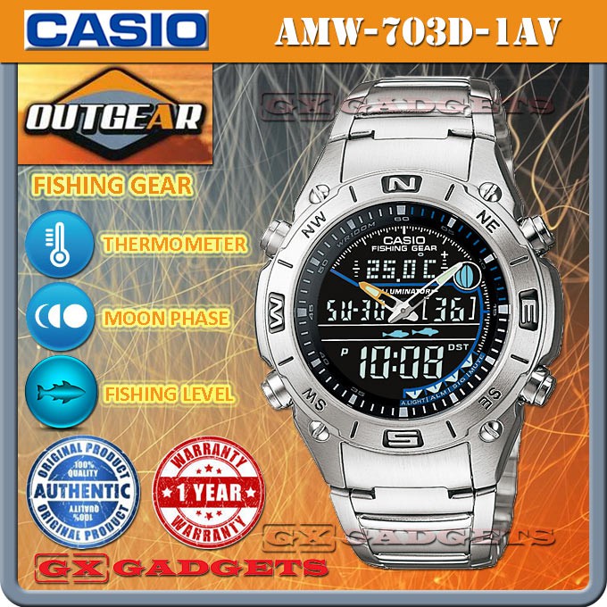 Casio fishing gear price clearance, CASIO OUTGEAR AMW 703D 1AV FISHING GEAR WATCH THERMOMETER AUTO LIGHT WR100M clearance