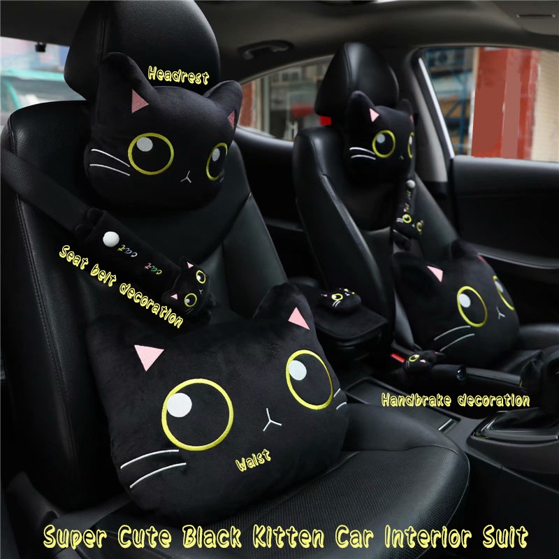 Cat car accessories clearance, New Cute Black Cat Car Headrest Car Neck Waist Support Pillow Car clearance