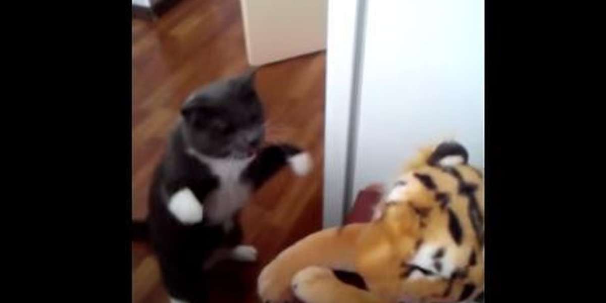 Watch This Angry Cat Knock The Stuffing Out Of A Toy Tiger