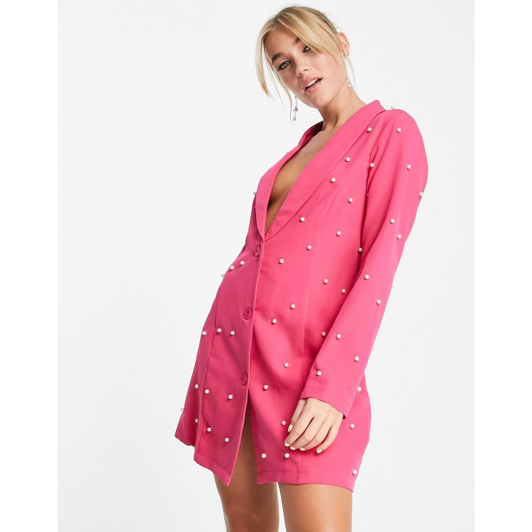 Cerise blazer clearance, Saint Genies pearl embellished blazer dress in cerise clearance