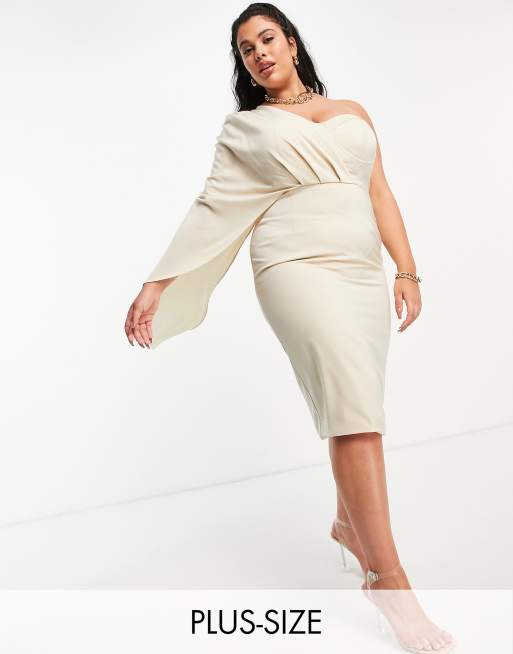 Lavish Alice Plus exclusive corset drape cape midi pencil dress in champagne