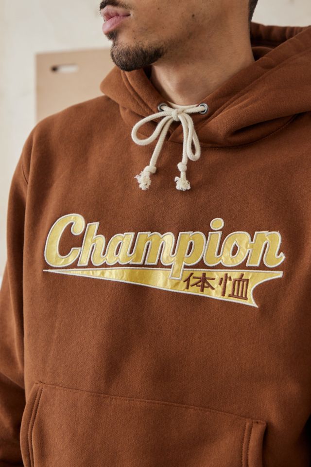 Champion UO Exclusive Reverse Weave Brown Japanese Varsity Hoodie
