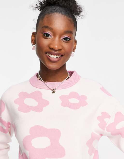 Liquorish knitted jumper with floral pattern in pink ASOS