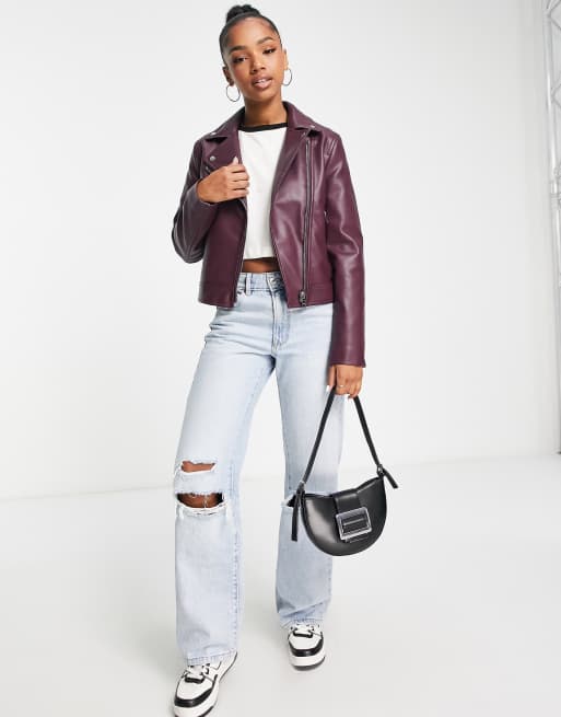 Chaqueta biker burdeos de cuero sint tico Ultimate de ASOS DESIGN
