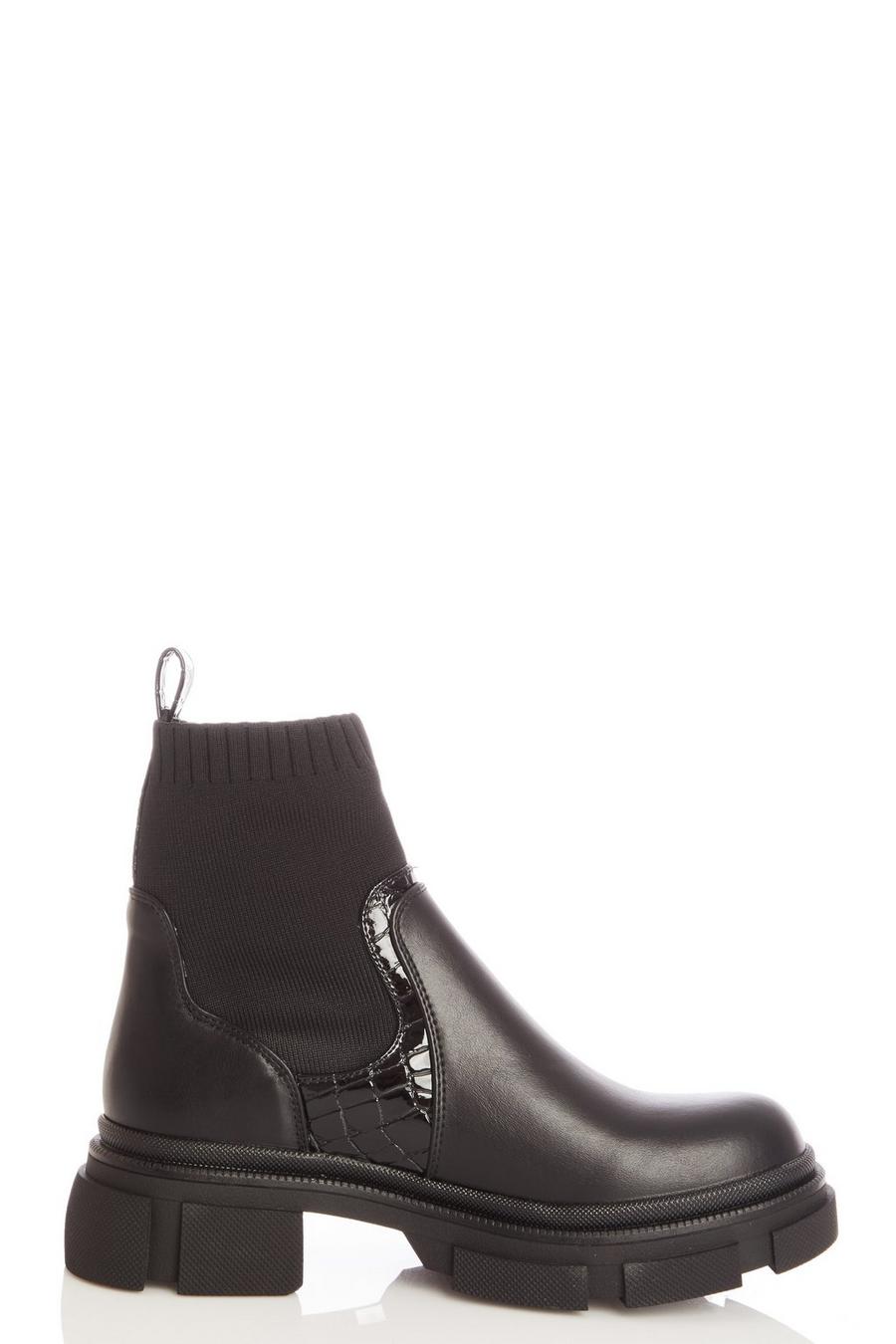 Black Leather Look Chunky Chelsea Knit Sock Boots New Look