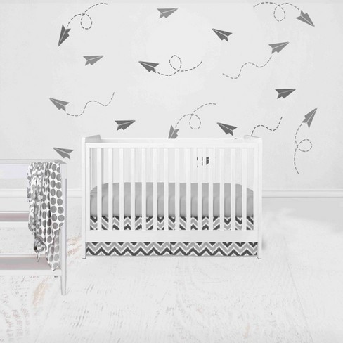 Bacati Ikat Chevron White Gray 4 Pc Crib Set With 2 Muslin