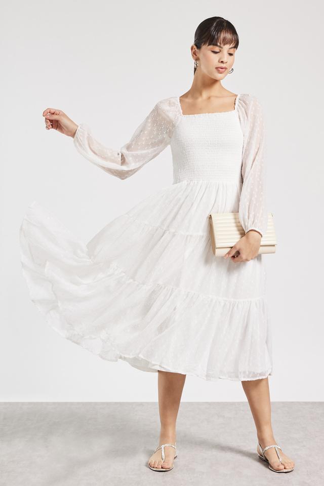 Smitten Sweetheart Neckline Chiffon Midi Dress White