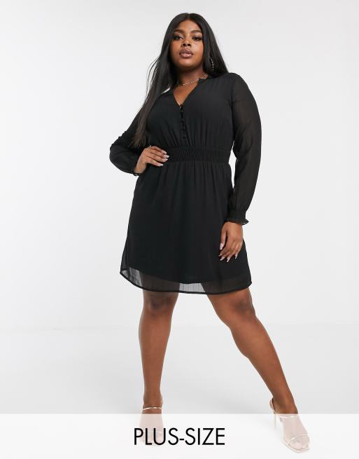Vero Moda Curve chiffon shift dress with shirred waist in black ASOS