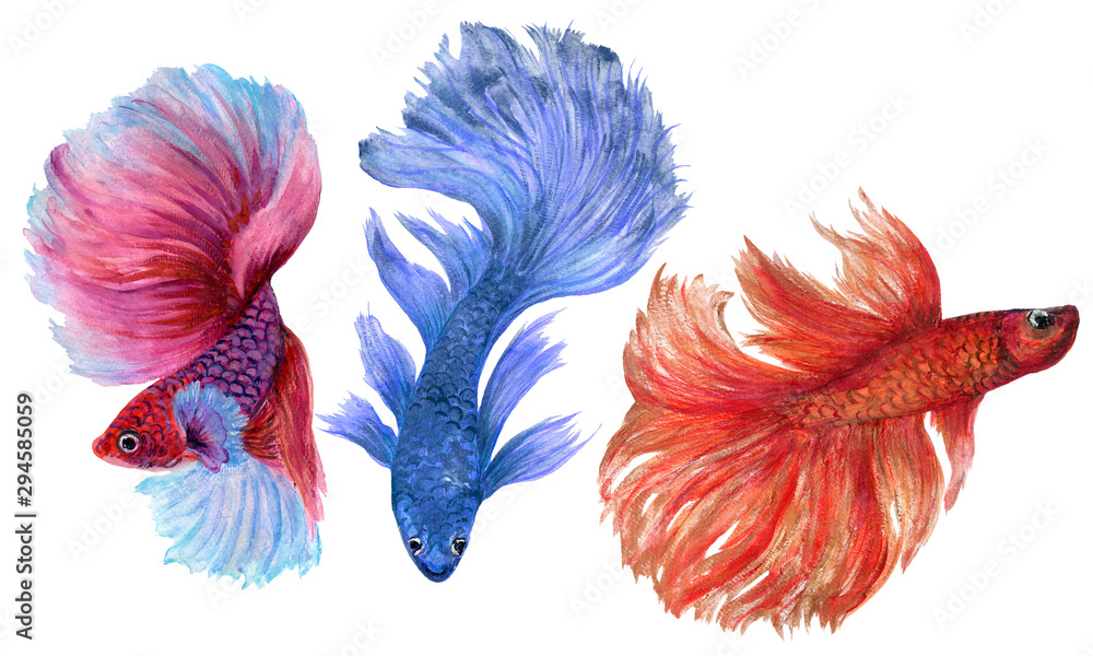 Chinese fighters fish clearance, Colorful Betta Fish watercolor hand paint Illustration Siamese and clearance