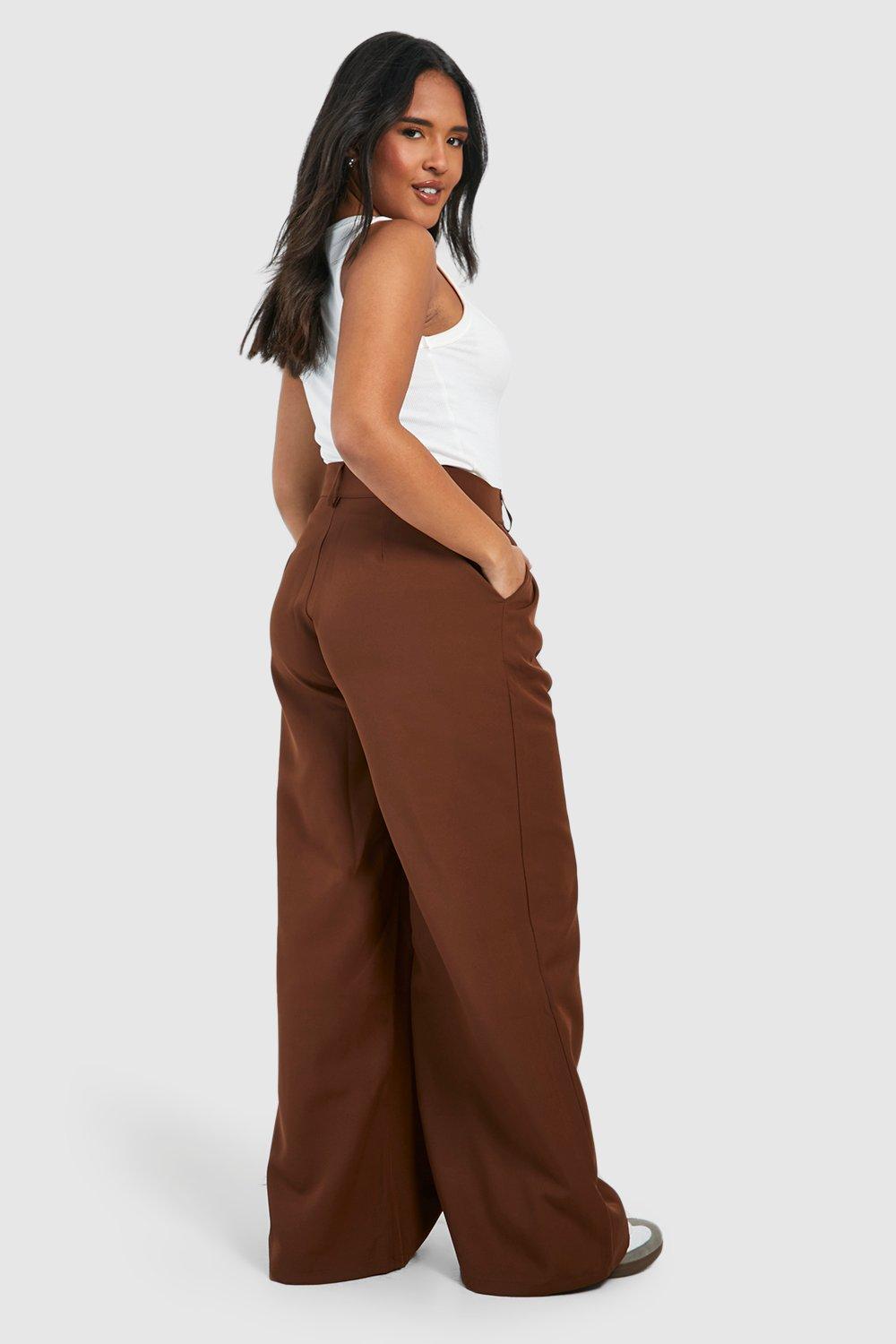 Flounce London Petite basic high waisted wide leg trousers in chocolate brown