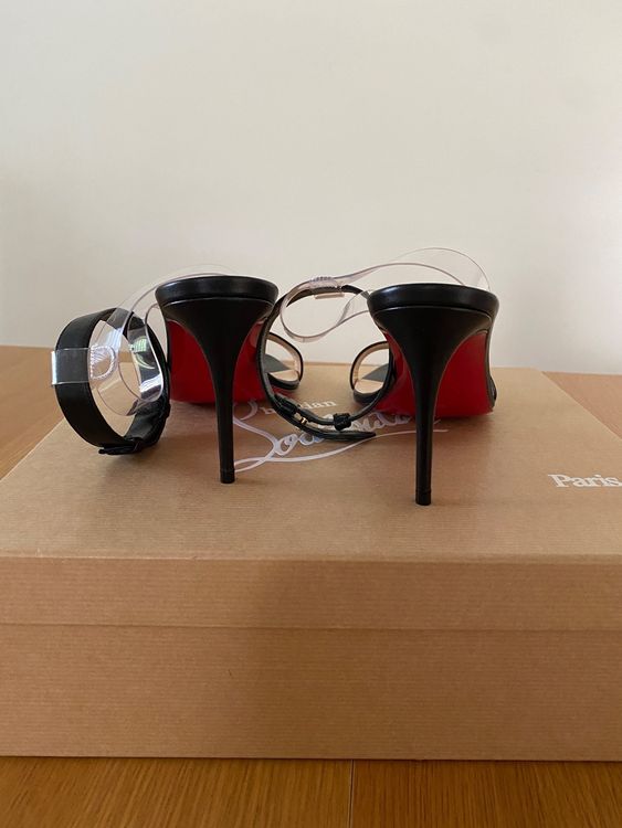CHRISTIAN LOUBOUTIN Jonatina 85 PVC Black Leather Sandals