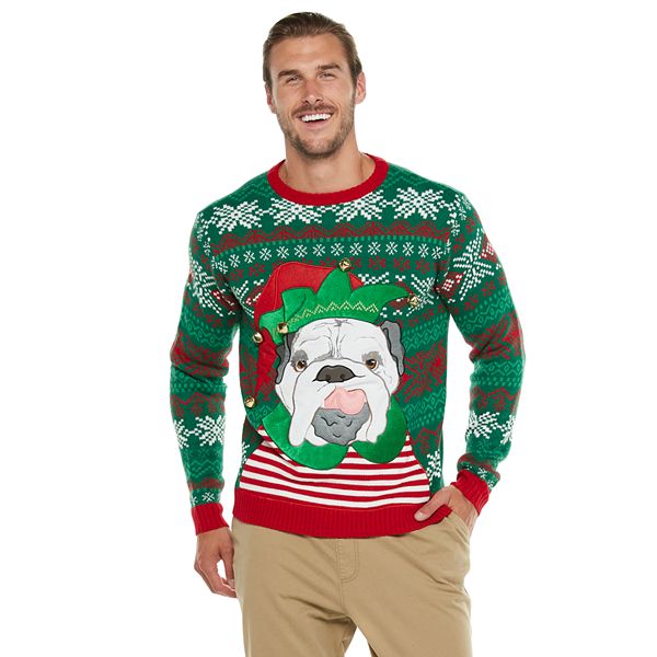 Big Tall Bulldog Jingle Bell Christmas Sweater