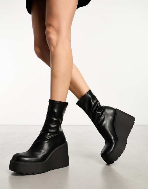 Chunky wedge booties clearance, Ladies Gothic Punk Chunky Wedge High Heel Platform Shoes Ankle clearance