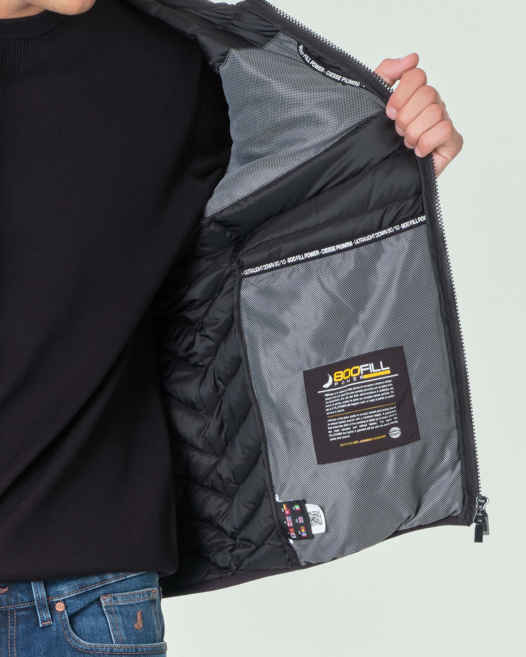 Piumino Franklin nero imbottito in piuma 800fill power con cappuccio