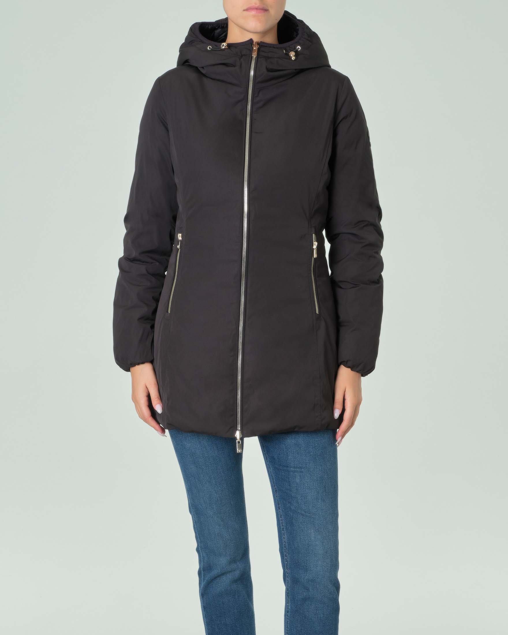 Piumino Kalie nero lunghezza media reversibile in tessuto liscio e