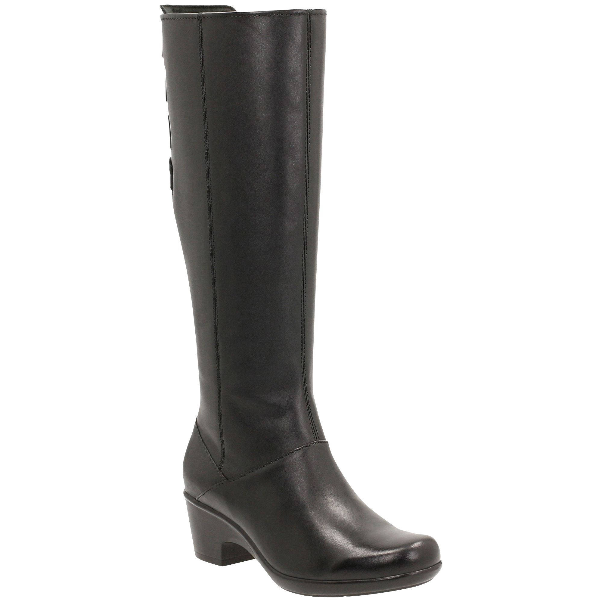 CLARKS MALIA SKYLAR BLACK GENUINE LEATHER MID CALF KNEE HIGH BOOTS
