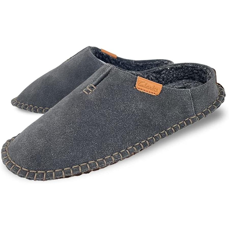 Clarks Mens Open Back Suede Leather Slipper With Heavy Stitching