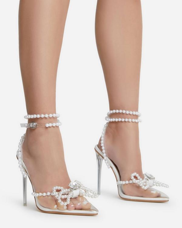 Clear perspex pointed heels clearance, Pearlle Diamante Bow Detail Clear Perspex Pointed Toe Stiletto clearance