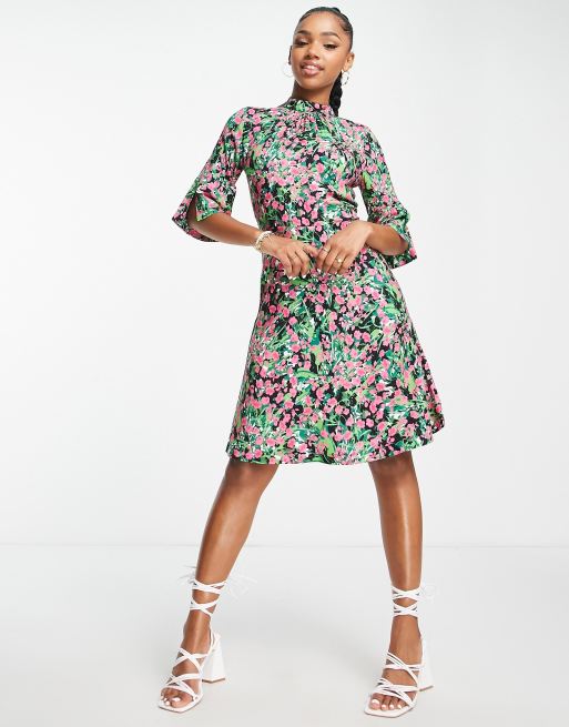 Closet london floral dress clearance, Closet London gathered a line mini dress in green clearance