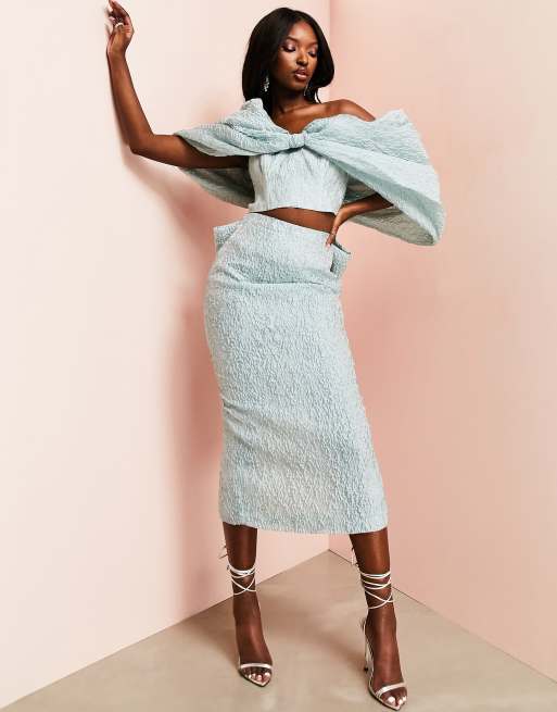 ASOS LUXE co ord bow midi skirt in textured organza in mint