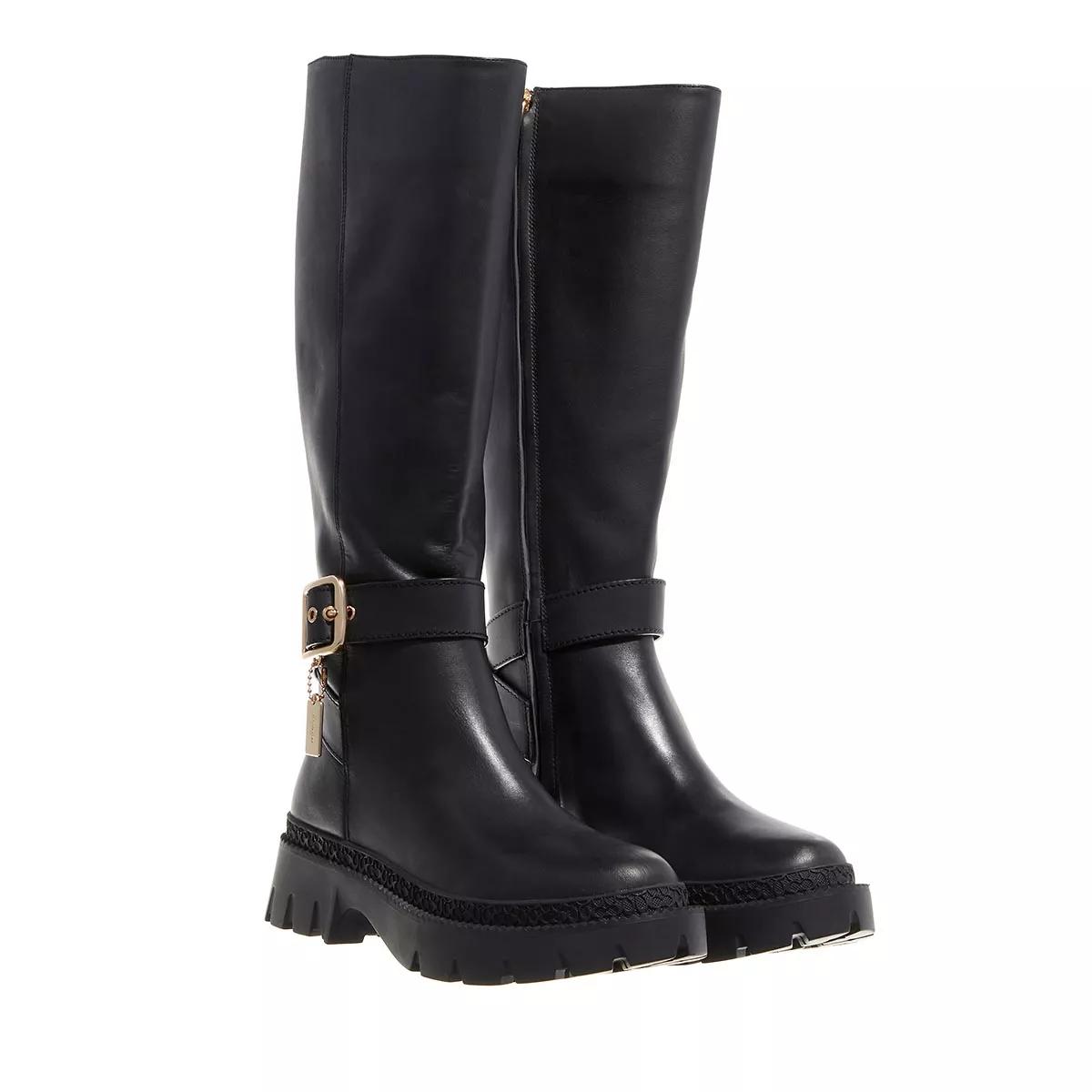 Nwob Coach Farrah Riding boots Tall Black Leather sz 5.5B US 36EU Logo Buckle