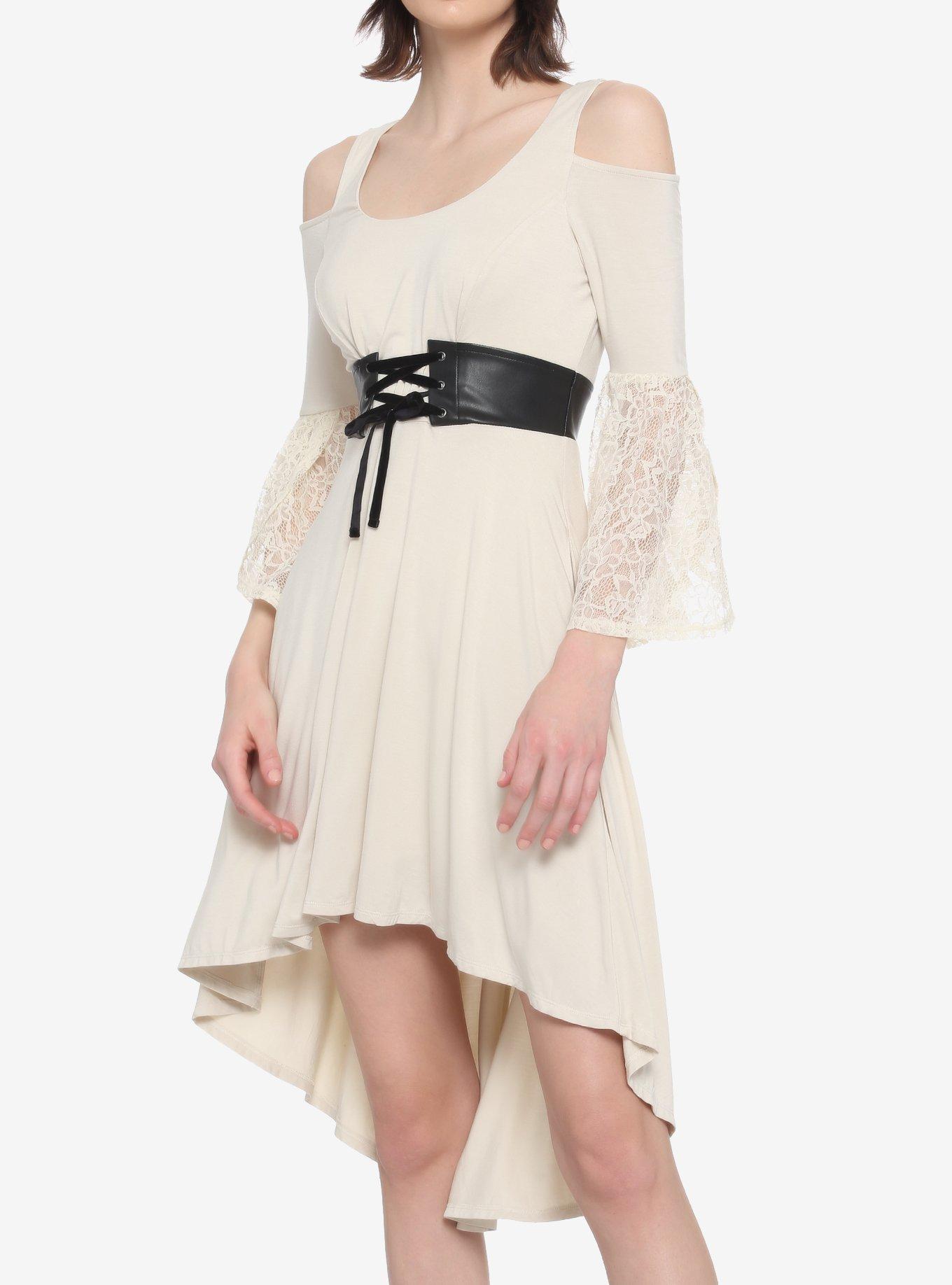 Ivory Lace Cold Shoulder Hi Low Dress
