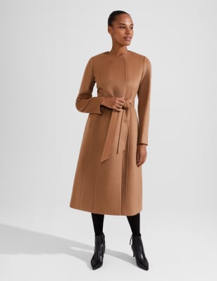 Pure Wool Belted Collarless Tailored Coat HOBBS M S