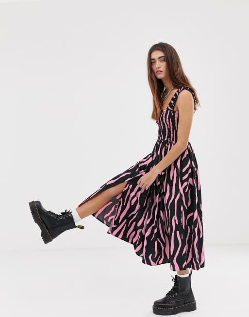 Collusion zebra shirred midi dress clearance, COLLUSION zebra shirred midi dress ASOS clearance
