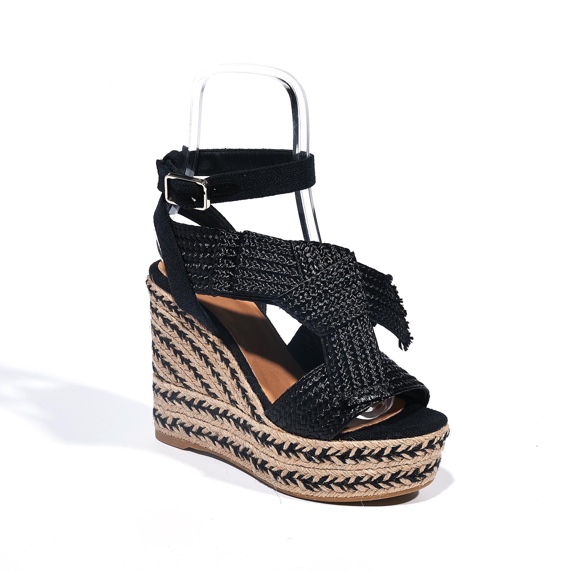 Sandale talon compens Bianca en coton noir