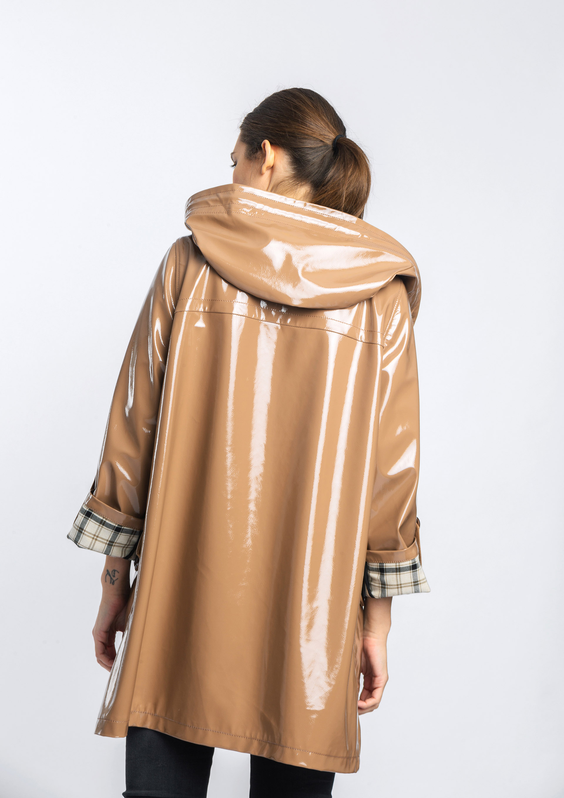 Comprar chubasquero charol mujer clearance, Chubasquero camel efecto charol clearance
