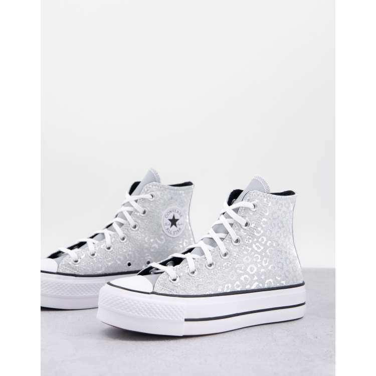 Zapatillas hi top con estampado de leopardo plateado metalizado y
