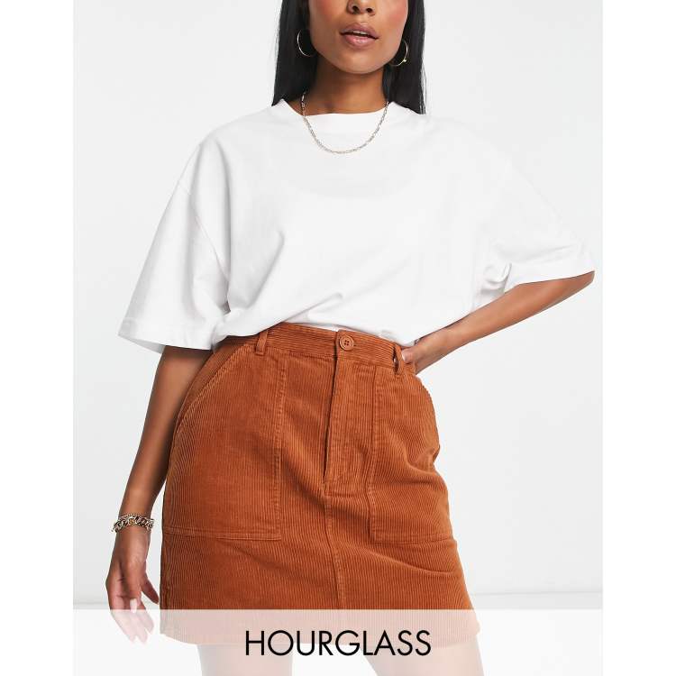 Cord skirt orange clearance, ASOS DESIGN Hourglass cord patch pocket mini skirt in rust ASOS clearance