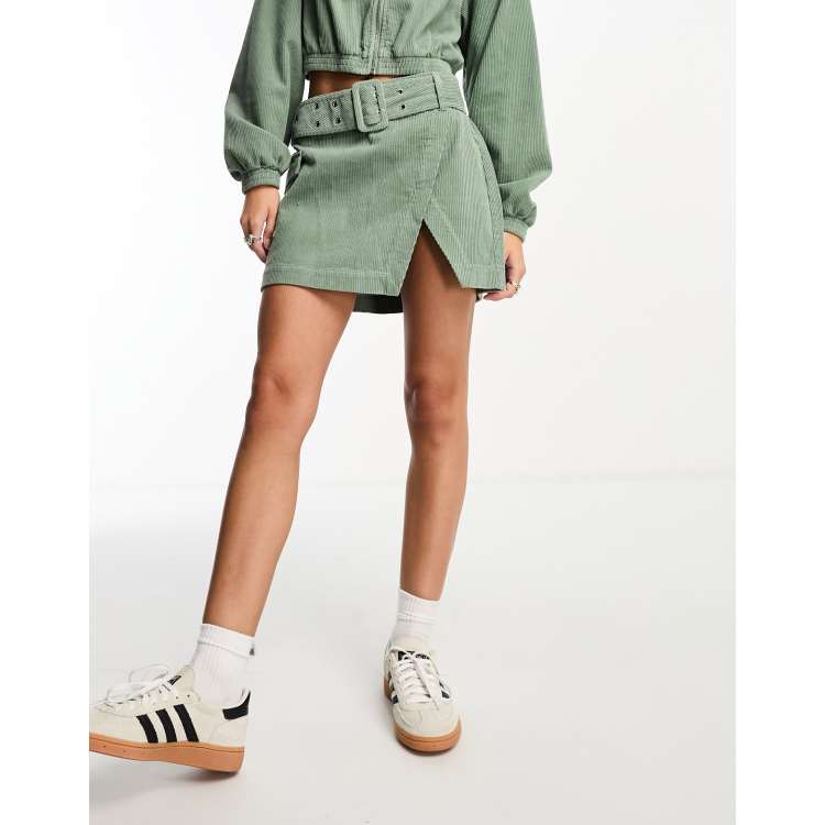 ASOS DESIGN cord wrap mini skirt in sage part of a set ASOS