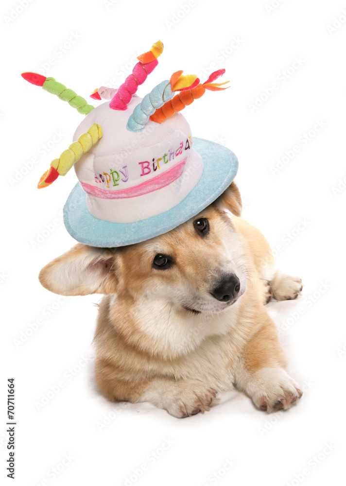 Welsh Corgi birthday hat Stock Photo Adobe Stock