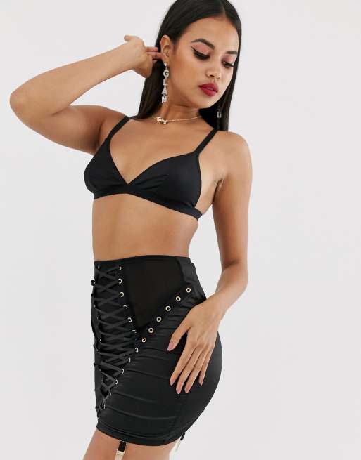 ASOS DESIGN mesh and satin lace up corset skirt