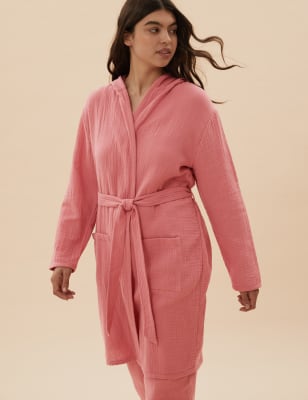 Cotton dressing gown with hood clearance, Pure Cotton Muslin Hooded Dressing Gown M S Collection M S clearance