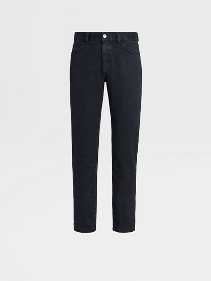 Navy Blue Stretch Linen and Cotton Jeans