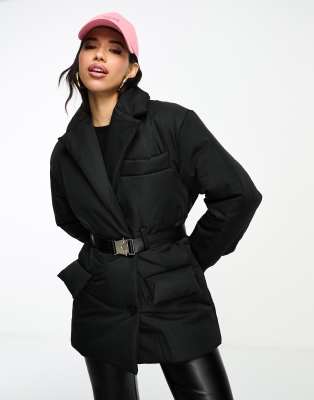 The Couture Club Padded Coat In Black With Belt ModeSens