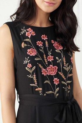 Buy COVER STORY Black Embroidery Sleeveless Rayon Womens Jumpsuit