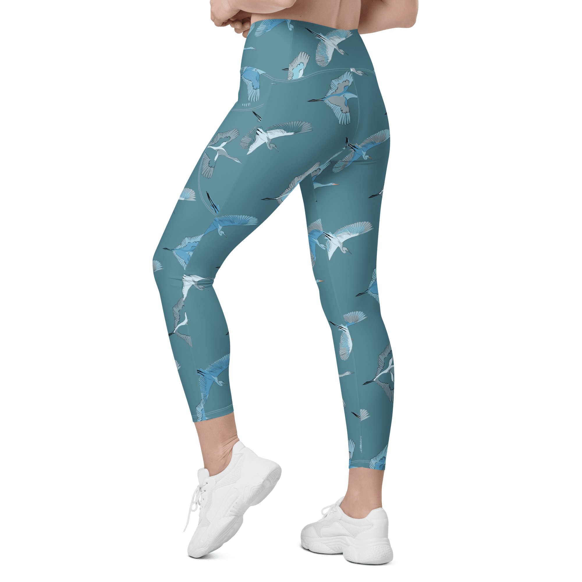 Japanese Crane Bird Leggings for Women Exercise Yoga Pants