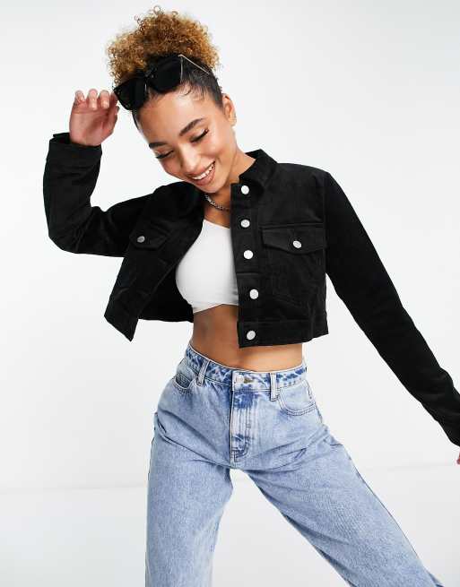 Black Cropped Cord Oversized Trucker Jacket PrettyLittleThing