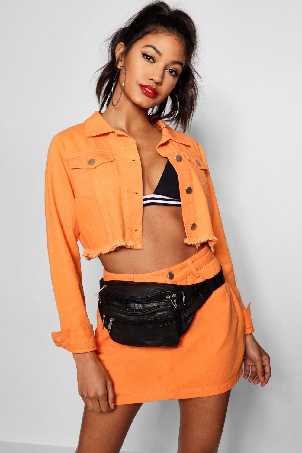 Cropped denim jacket orange clearance