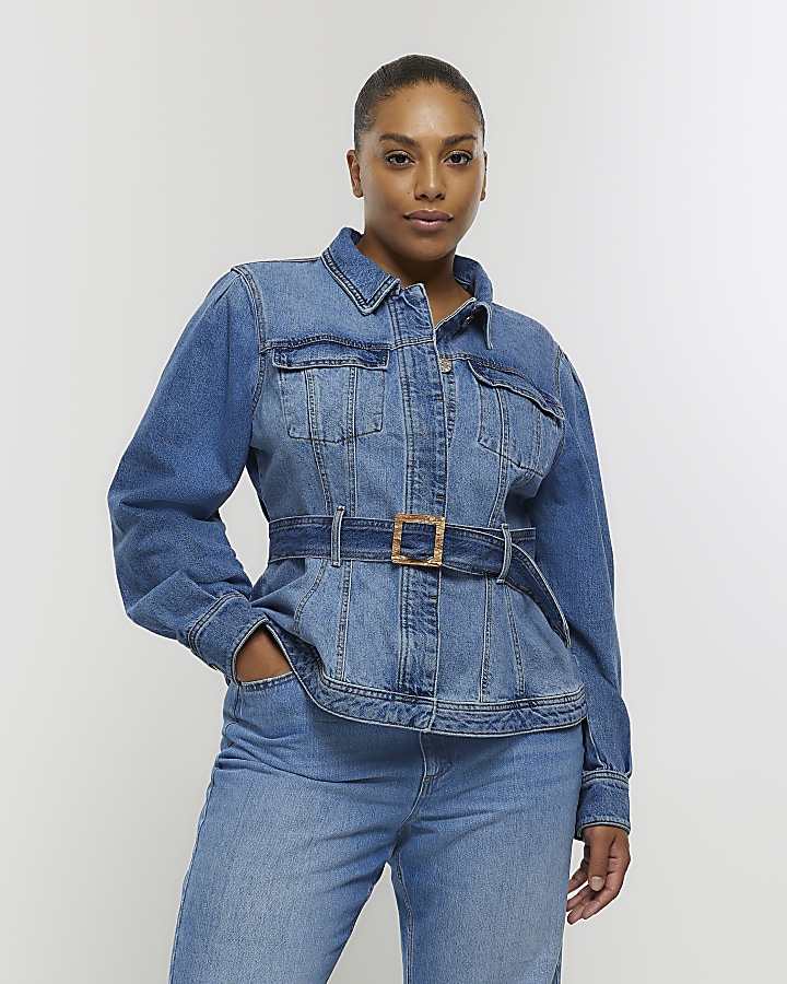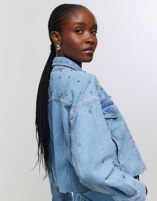 Cropped denim jacket river island clearance, River Island Blue embellished crop jacket in denim light ASOS clearance
